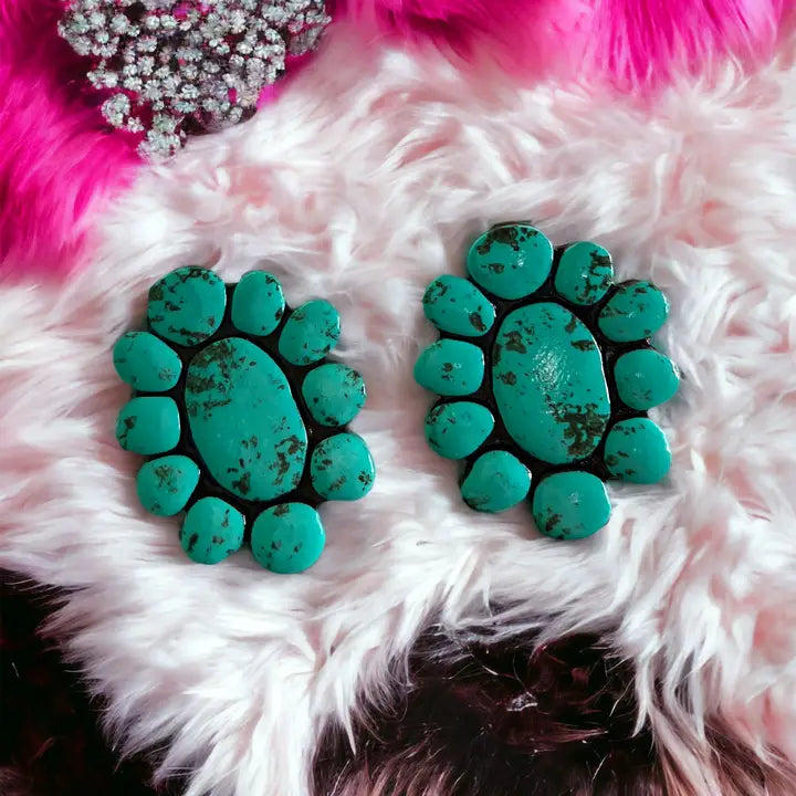 Made with polymer clay, painted and distressed to imitate the real turquoise stone dimension: weight: 0.3 Oz per earring. Approximately 0.6 Oz a pair.